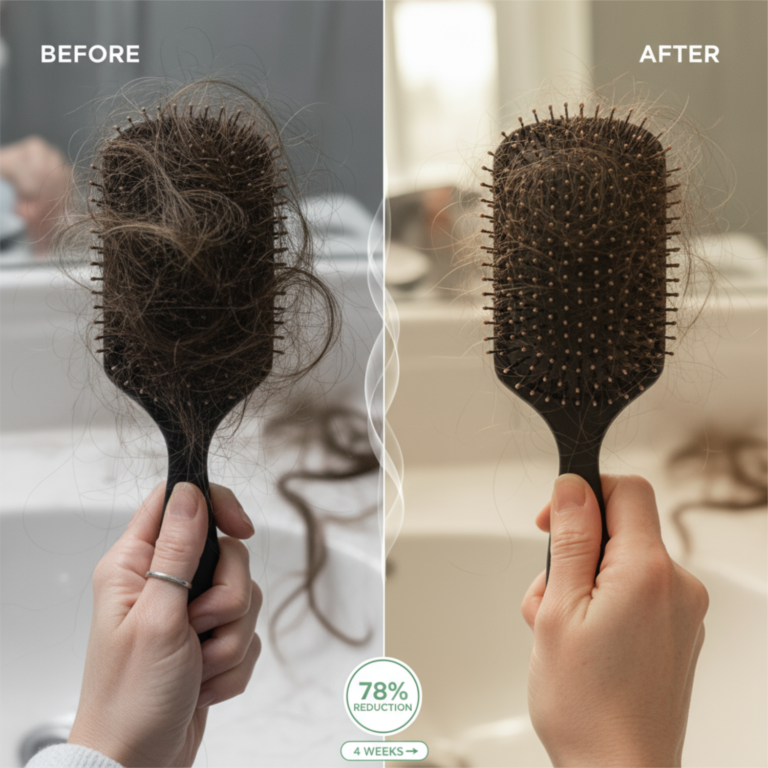 Stop dreading your shower drain. Our formula reduces excessive shedding by 78% within 4 weeks - without facial hair, without dependency, without fear. Just normal hair loss again instead of handfuls. Finally brush without counting strands.